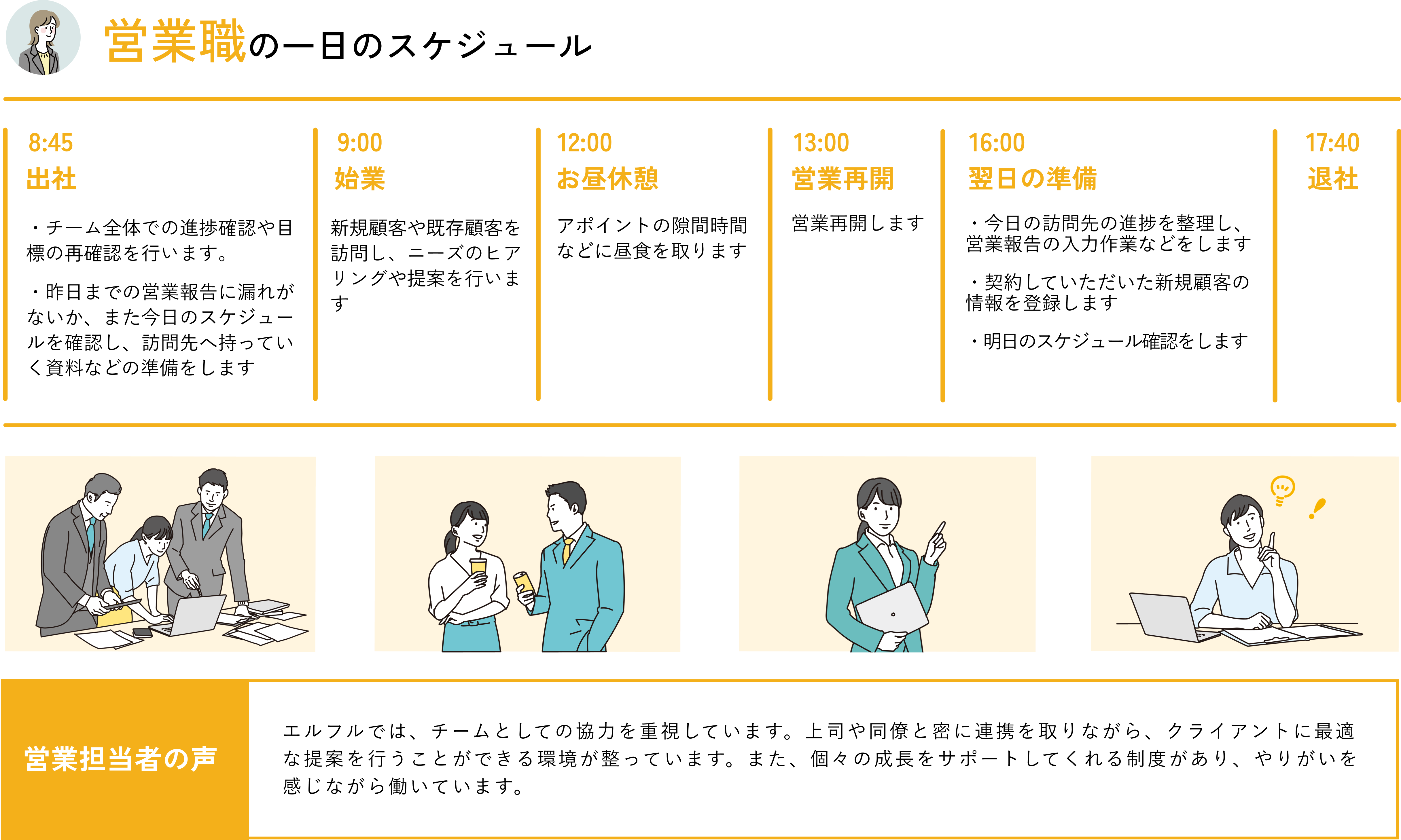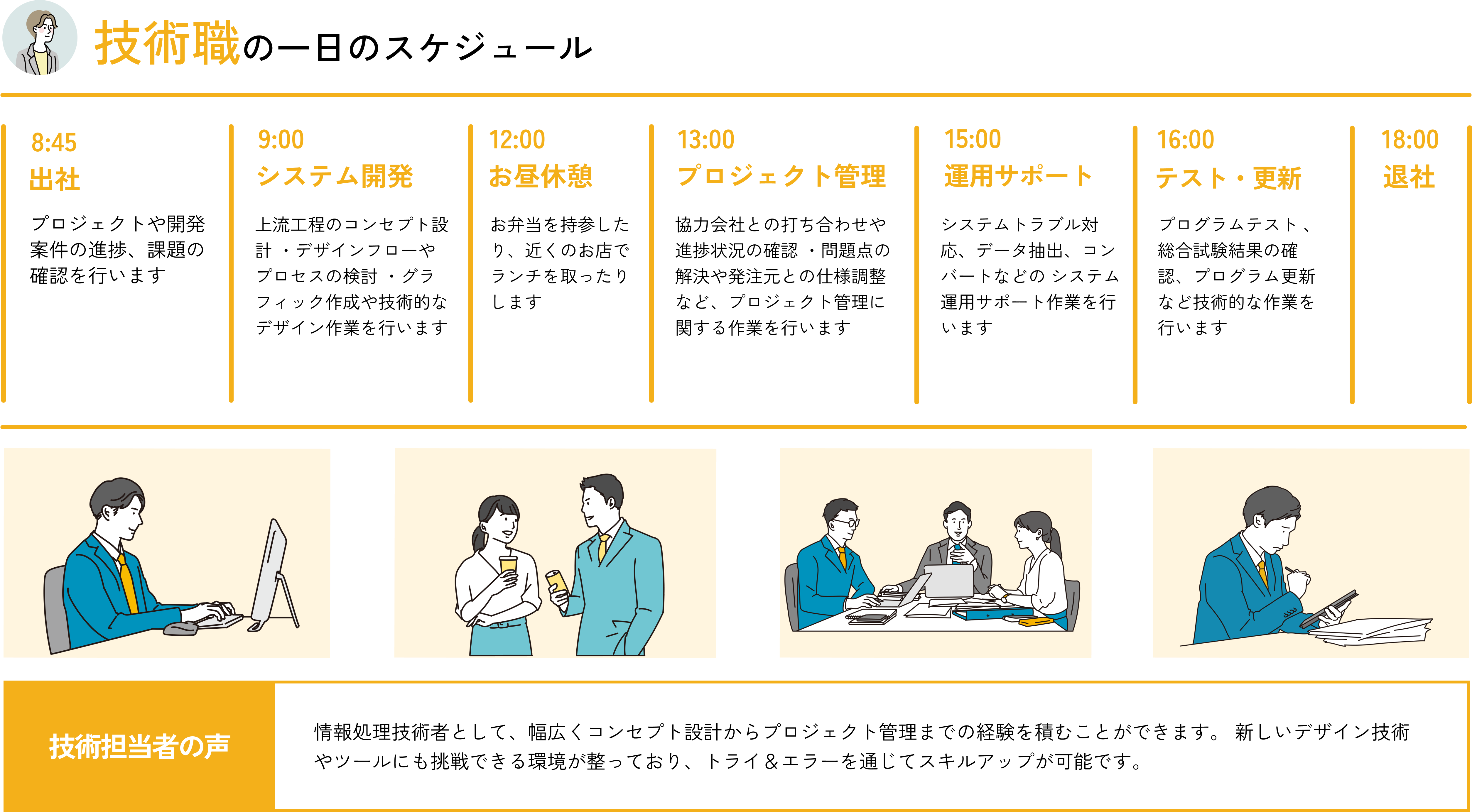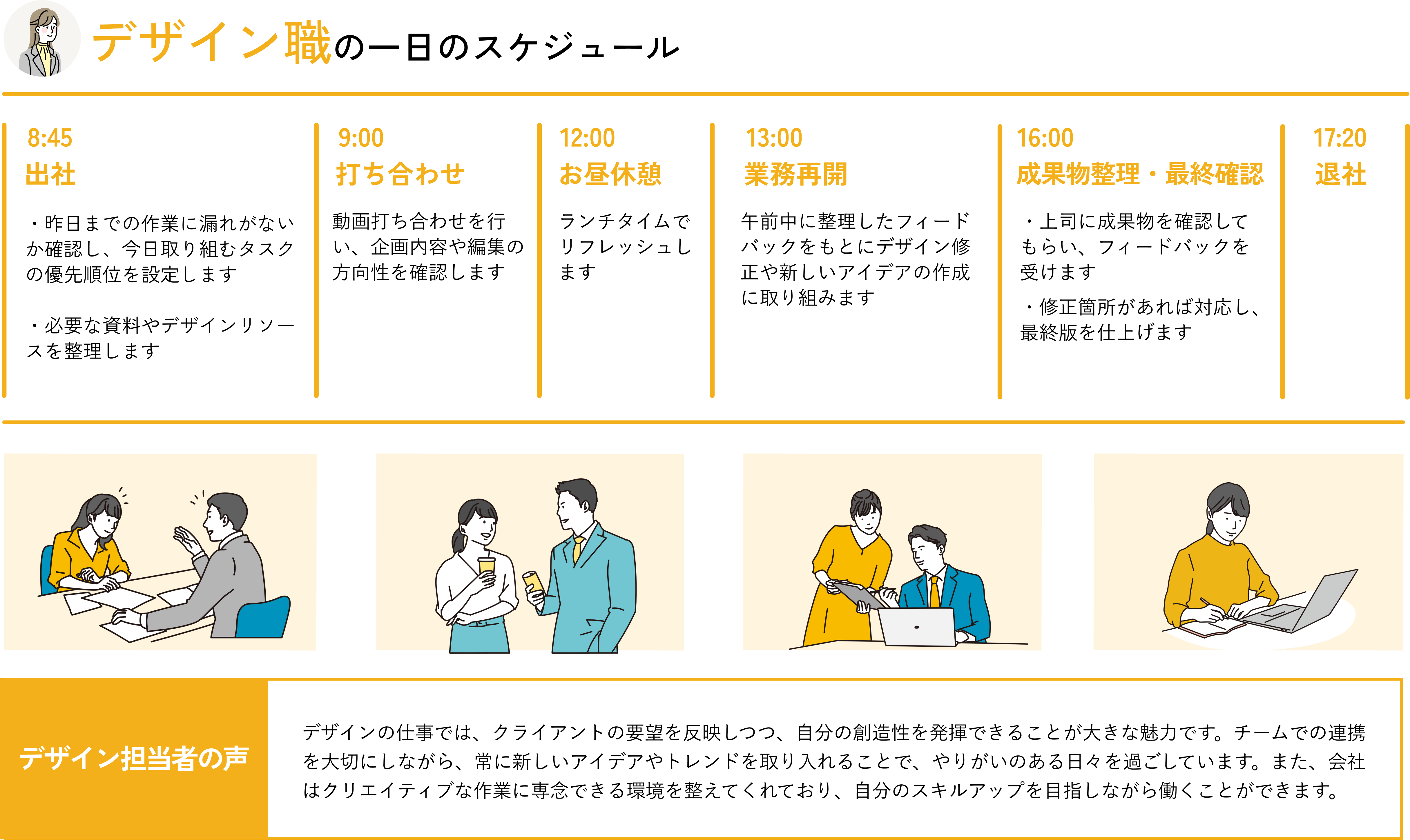 営業職と技術職、デザイン職に分けた日常業務をご紹介します。